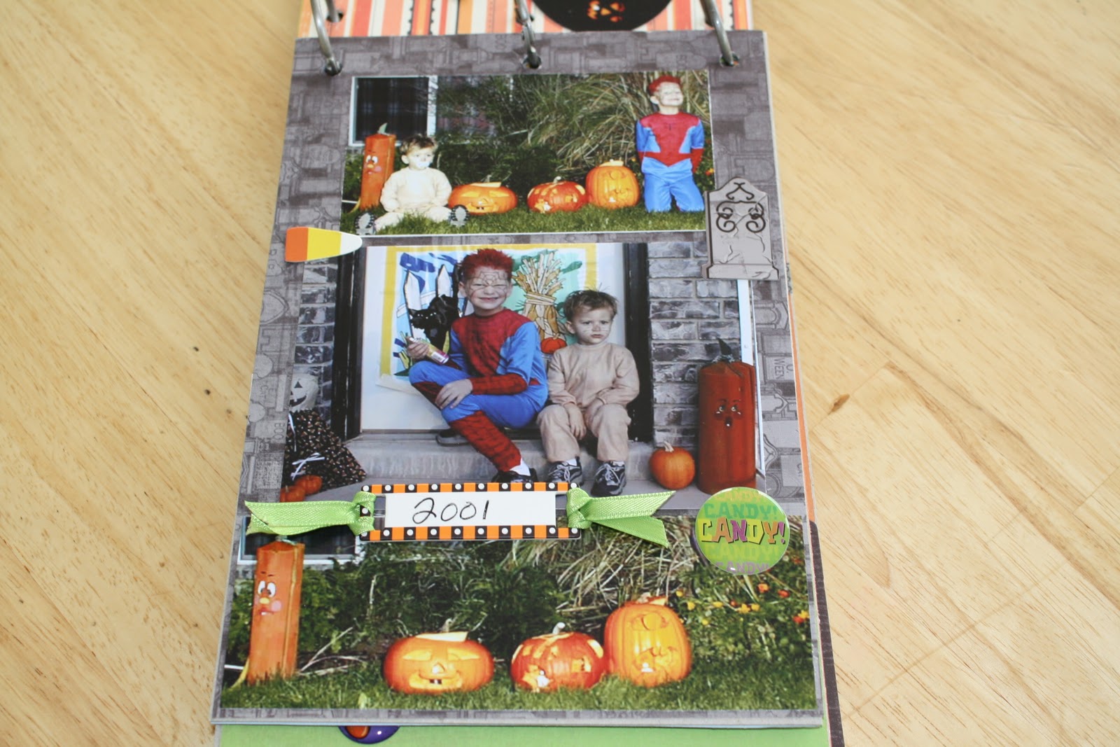 I am making each of my boys a Halloween mini album. I got the albums from a local craft store & they are made by Bo Bunny. I had some Halloween papers but had to go get some more. I know it is a odd time to be working on Halloween mini albums but I have been getting all my old film made over to digital cd's. I am almost done, only two rolls left. I take a few in every couple weeks & so excited to be done. I am hoping for more Halloween on those last two rolls. Most of the rolls of film are from the eightys.